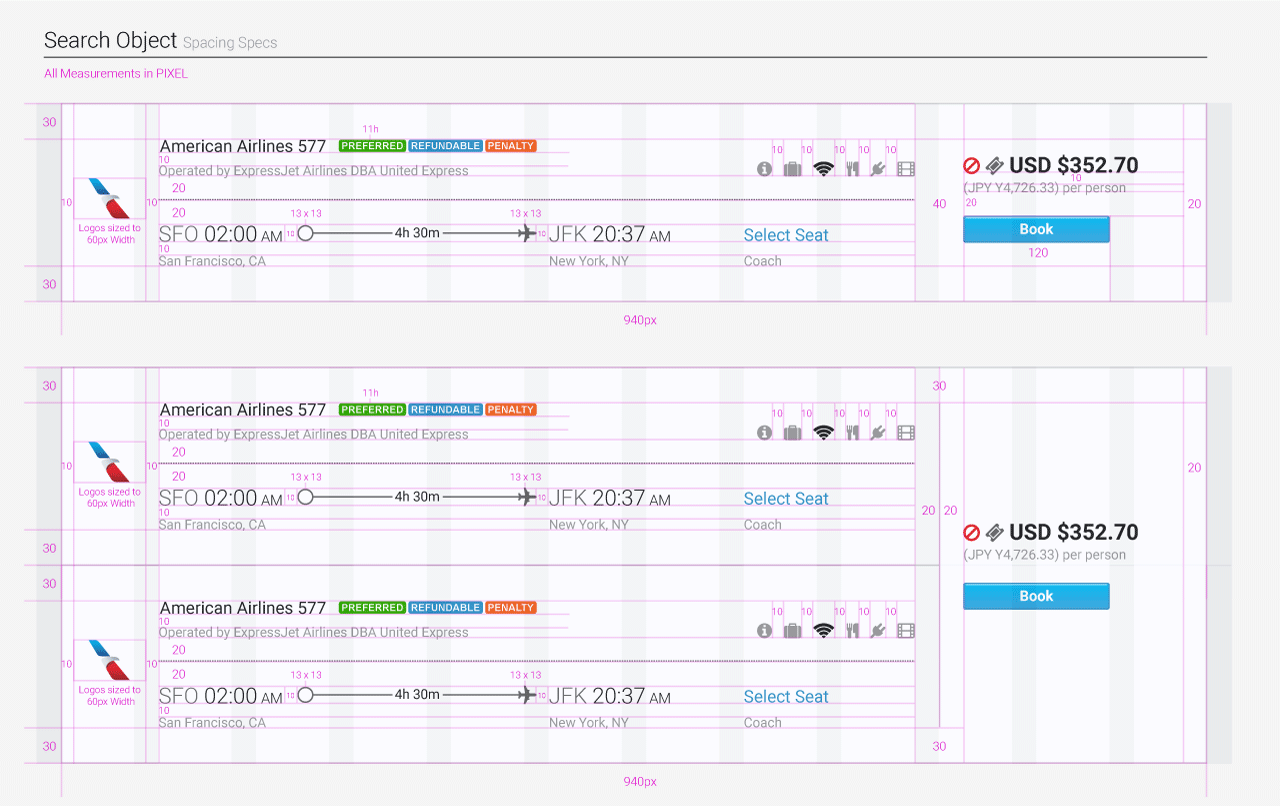 We redesigned a six year old enterprise travel booking product which included flight, hotel, car rental, and rail services. The product includes policy controls, multiple vendors, and robust filtering, all of which were completely redesigned.